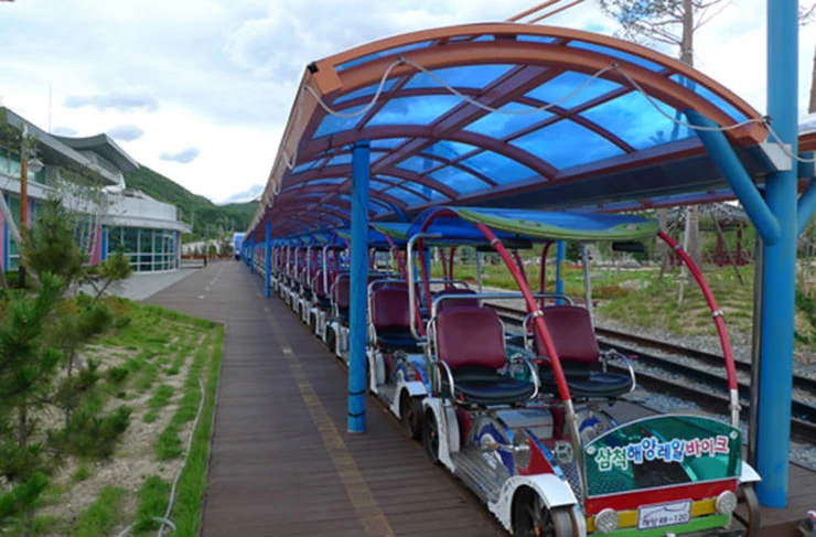 곰솔과 기암괴석으로 어우러진 국내 유일의 해양레일바이크는 아름다운 동해의 해안선을 따라 5.4km복선으로 운행되고 있으며 루미나리에와 레이저 쇼가 연출되는 환상의 터널은 잠시나마 신비로운 해저터널을 여행한 듯 하다. 수려한 디자인과 친환경으로 설계된 레일바이크는 가족과 친구와 연인끼리 색다른 체험과 즐거움으로 아름다운 삼척의 추억을 듬뿍 가져갈 베스트 관광코스이다.